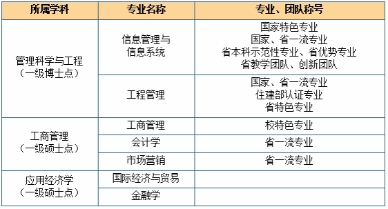 设立信息管理与信息系统、工程管理、工商管理、会计学、市场营销、国际经济与贸易、金融学7个本科专业。现拥有国家级大学生校外实践教育基地5个、辽宁省大学生校外实践教育基地3个、辽宁省大学生创业项目选育基地1个,省级重点实验室1个。