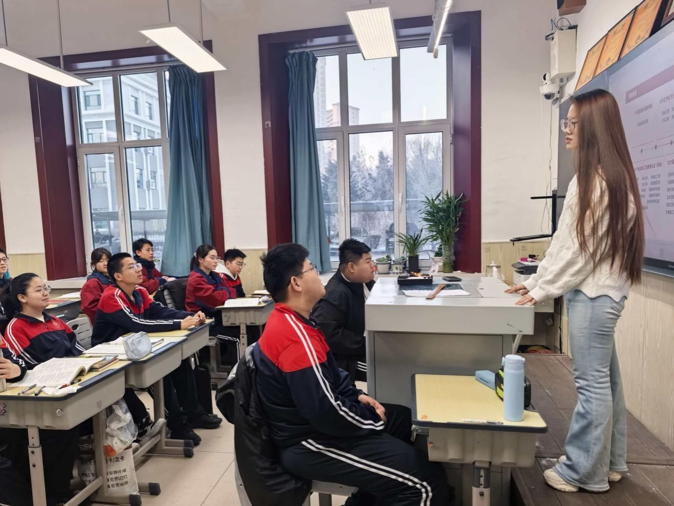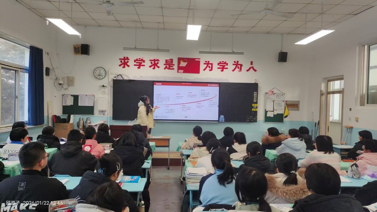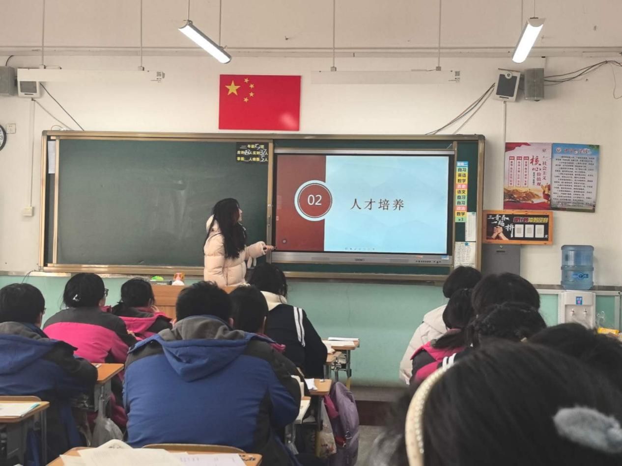 寒假期间,杜鑫睿同学积极投身招生宣传实践活动。她重返熟悉的教室,面对学弟学妹们求知的目光,他利用多媒体课件与宣传片,介绍了我校学校概况、优势学科、校园生活。互动环节中,杜鑫睿结合自身经历耐心解答学生的疑问,并发放宣传资料。