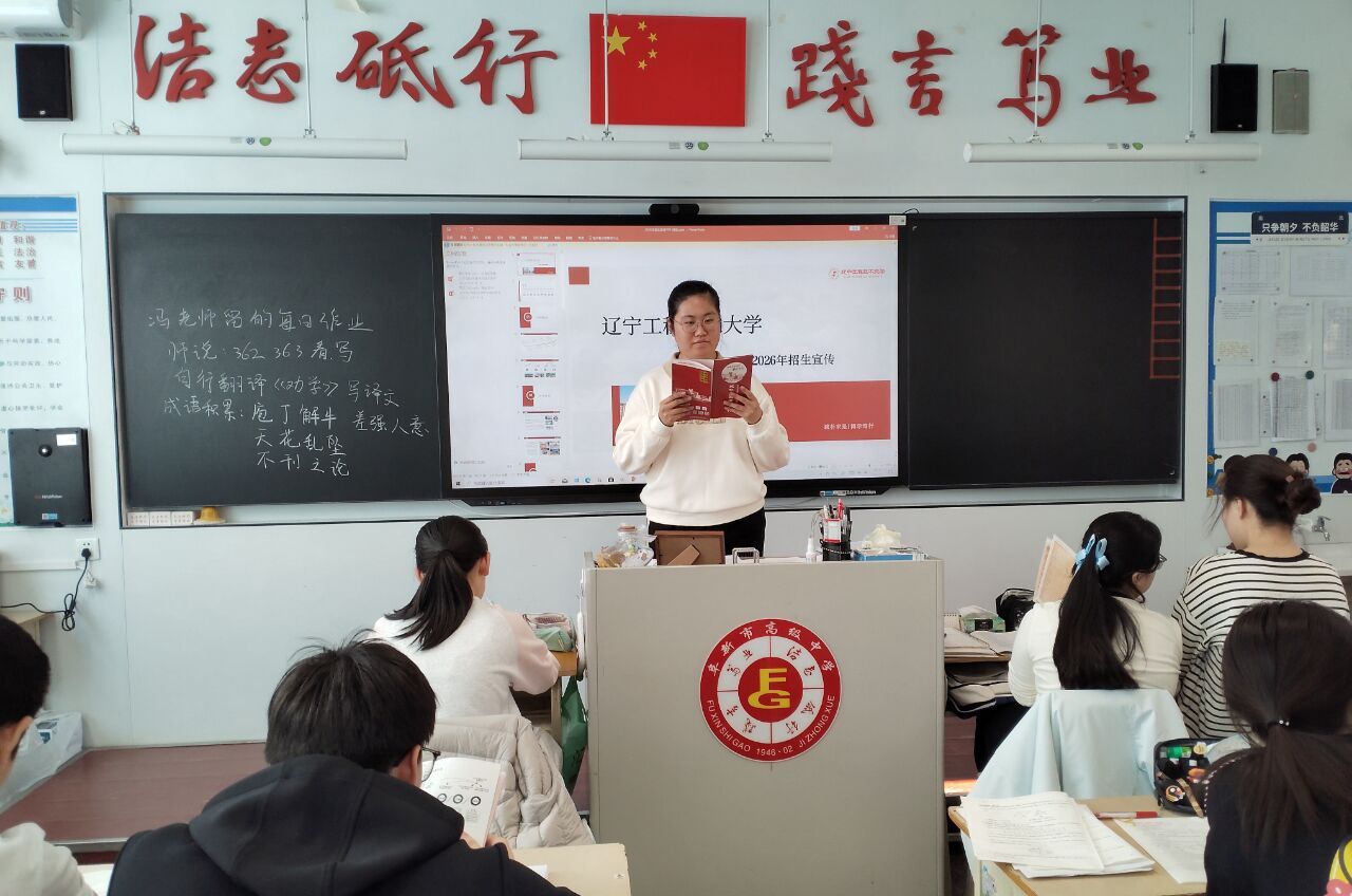 2026年寒假,赵丰宜同学重返高中母校,开展招生宣传社会实践活动。她立足校友视角,全面介绍了学校概况、专业特色及学习生活氛围,并无私分享了高考备考策略与大学成长感悟。宣讲期间,她聚焦高考复习技巧、志愿填报等问题,进行了深入剖析与解答。此次活动成功构建了高中与大学间的沟通纽带,既展现了辽工程学子的优良风貌,又有效帮助高中学子明晰奋斗目标、坚定升学信心。