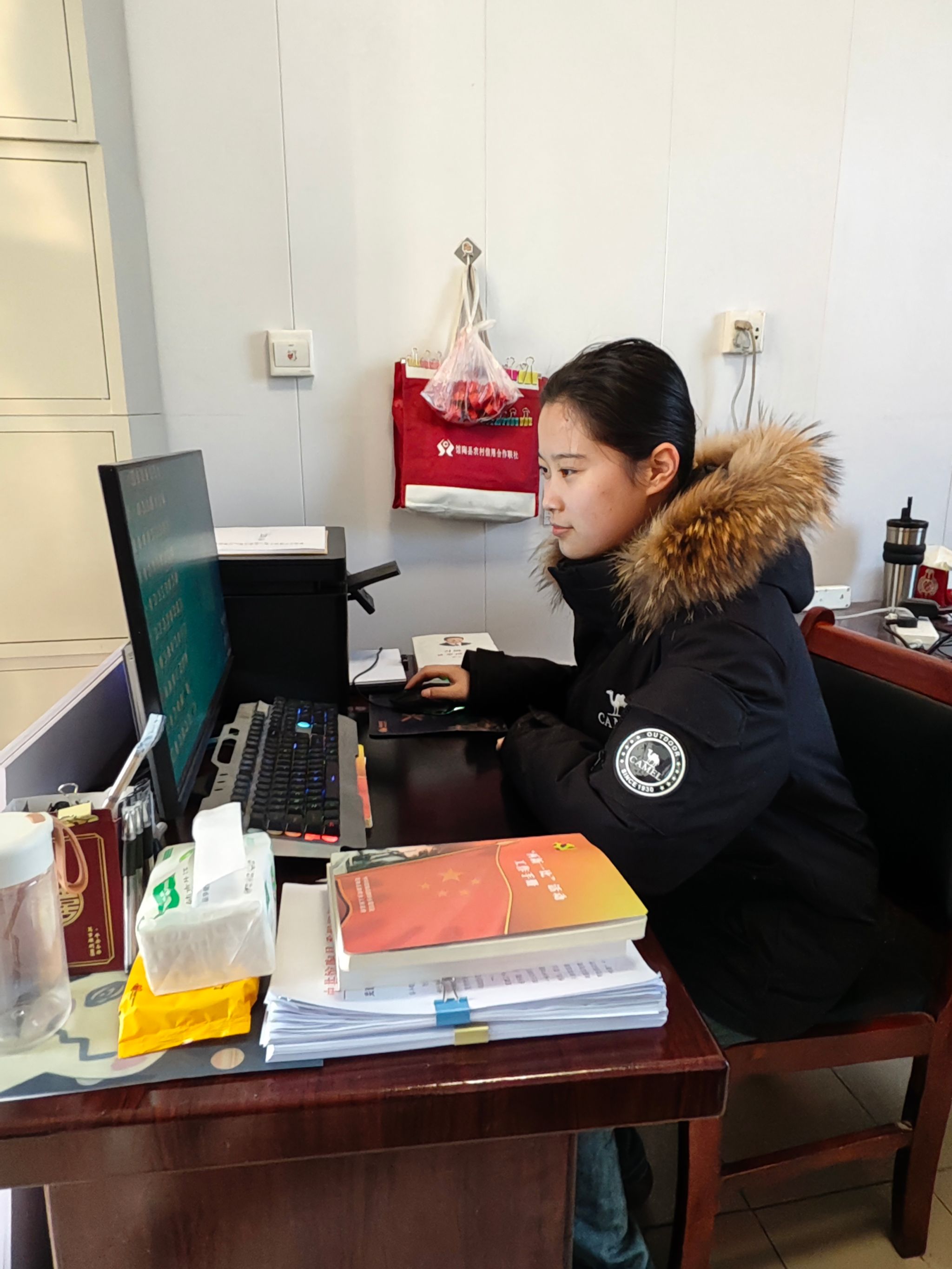 齐欣芮同学主动与社区居委会对接,在政务辅助工作中,依靠计算机操作优势,协助完成300余条居民信息的录入、分类与核对;电话提醒居民办理社保缴费、医保年审业务,有效缓解社区寒假人手紧张问题,提升服务效率;政策宣传中精心制作反诈防骗、医保政策宣传卡片,在社区广场、沿街商铺等人流密集处,普及预防电信诈骗与医保异地就医新规,累计发放宣传手册200余份。