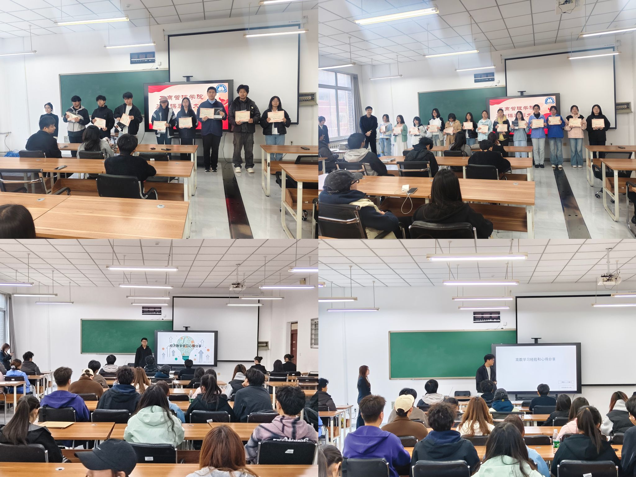 在学习经验分享环节,高等数学、经济数学课程高分学生代表依次发言,结合自身学习历程,从课堂专注听讲、课后及时复盘、错题整理归纳、考前高效复习等方面,分享实用学习方法与备考心得,为在场同学提供了可借鉴、可操作的学习思路,互动交流积极踊跃,现场反响热烈。