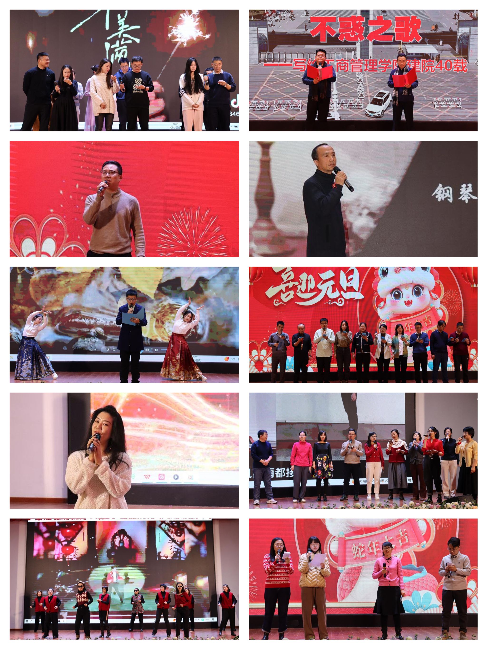 机关全体教师的合唱“小美满”拉开了联欢会的序幕,金融系、工程系分别带来了自创的诗歌朗诵,赢得了在场观众的热烈掌声。工程系则以幽默的三句半表演,为现场增添了轻松愉快的气氛。经贸系、会计系、营销系、经管系、信管系的演唱,或深情婉转,或激昂澎湃,大家用动听的歌声传递着对新年的美好祝福。会计系全体女教师的舞蹈点燃了现场的热情与激情,为整个活动增添了一抹亮色。为增加教师间互动性,现场还安排了互动游戏,现场气氛热烈,欢声笑语不断。