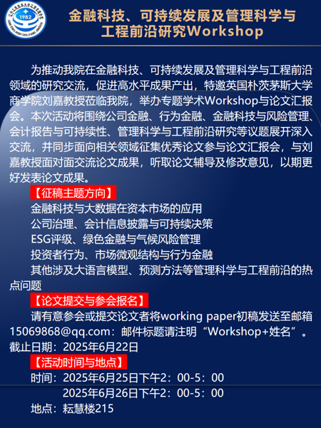 上一条:喜报:我院李永立老师在ABS三星期刊《International Journal of Finance & Economics》上发表重要学术论文