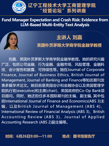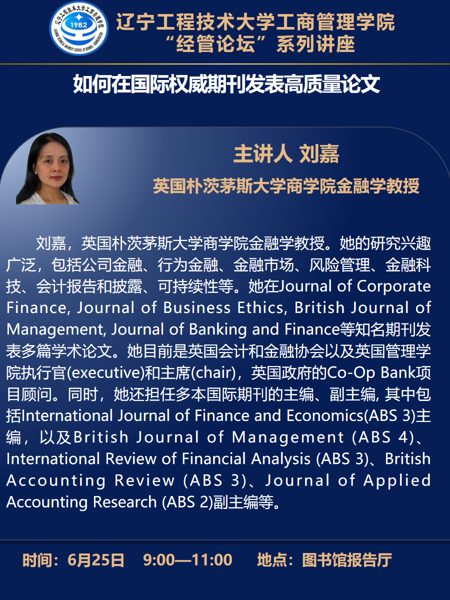 经管论坛——英国朴茨茅斯大学商学院刘嘉教授学术报告
