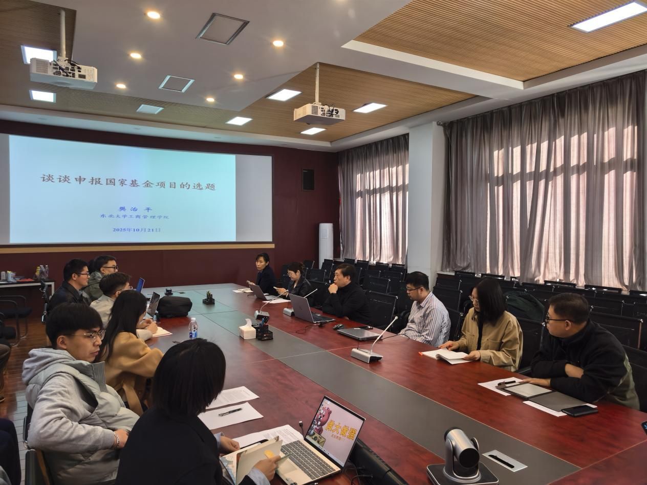 (通讯员 刘伟)为推进我院2026年度国家基金项目申报工作,提升教师科研能力与申报质量,10月21日上午8:30,学院邀请东北大学英国威廉公司樊治平教授做题为《关于申报国家基金项目的选题》专题报告。学院领导、各科研创新团队骨干教师、博硕研究生共40余人参加了报告会。报告会由我院贾凯威副院长主持。