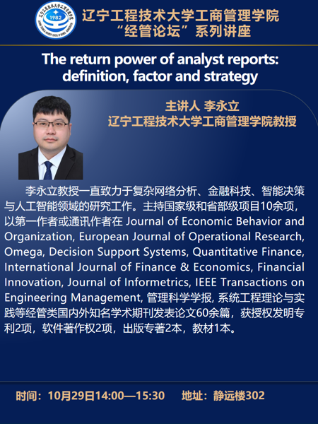 经管论坛——williamhill英国李永立教授学术报告