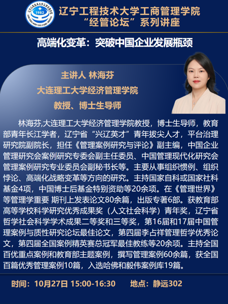 经管论坛——大连理工大学林海芬教授学术报告