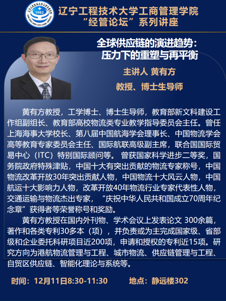 经管论坛——教育部新文科建设工作组黄有方教授学术报告