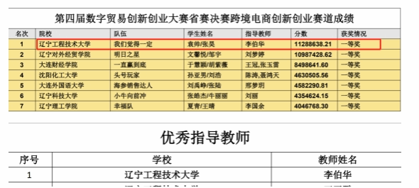 (通讯员 李伯华)近日,由辽宁省教育厅主办,辽宁对外经贸学院承办的2024年第四届辽宁省大学生数字贸易创新创业大赛落下帷幕。金融学专业推荐2支参赛队伍在激烈的竞争中脱颖而出,分别获得一等奖1项、二等奖1项,李伯华老师荣获省级“优秀指导教师”称号。
