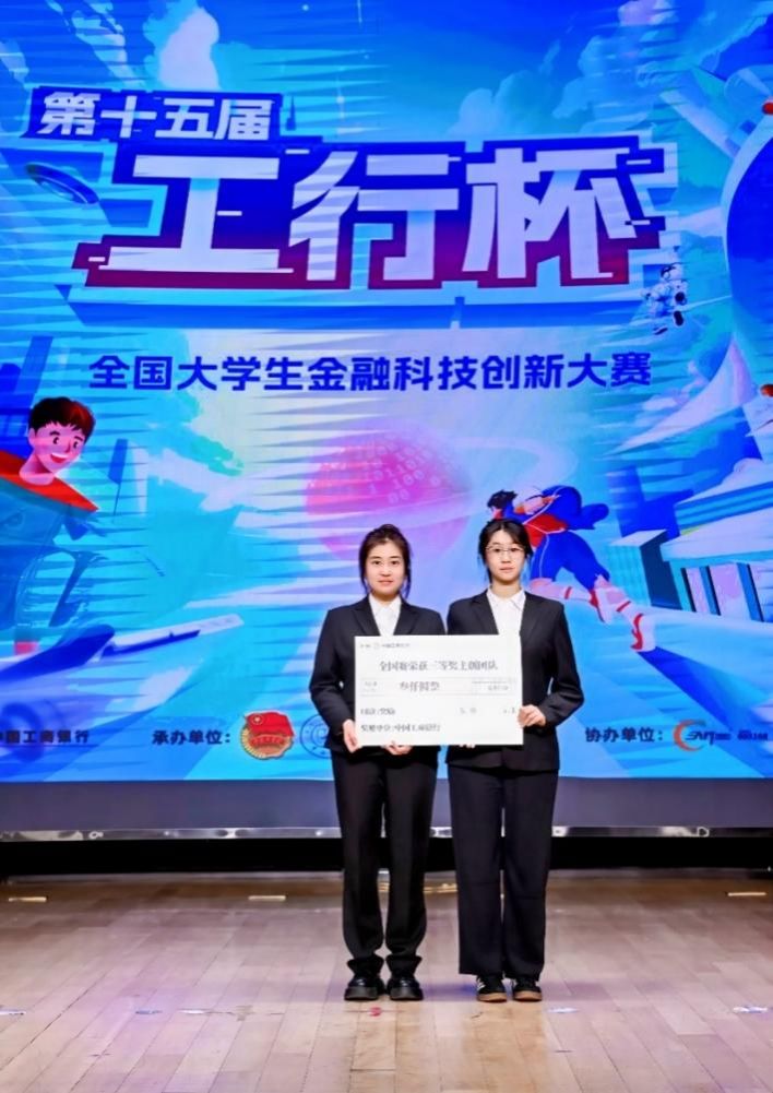 (通讯员 李伯华)2025年3月5日,第十五届“工行杯”全国大学生金融科技创新大赛圆满落幕,我校金融专业学生许蕊、黄甜程同学在李伯华老师的指导下,斩获全国三等奖并获得进入工行工作和实习的机会,展现了我校学子扎实的专业素养和卓越的创新能力。