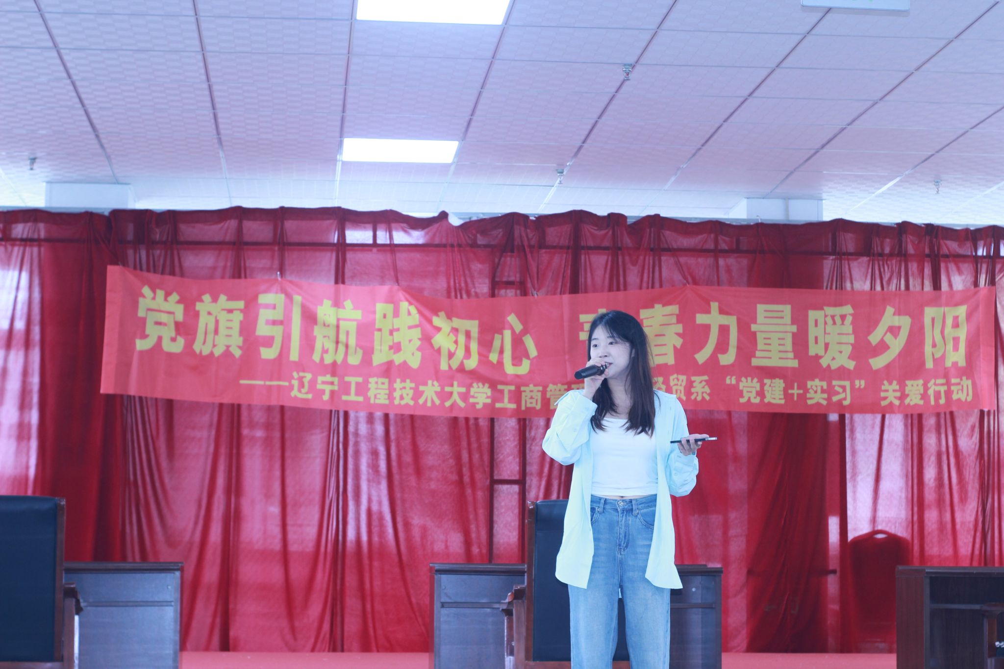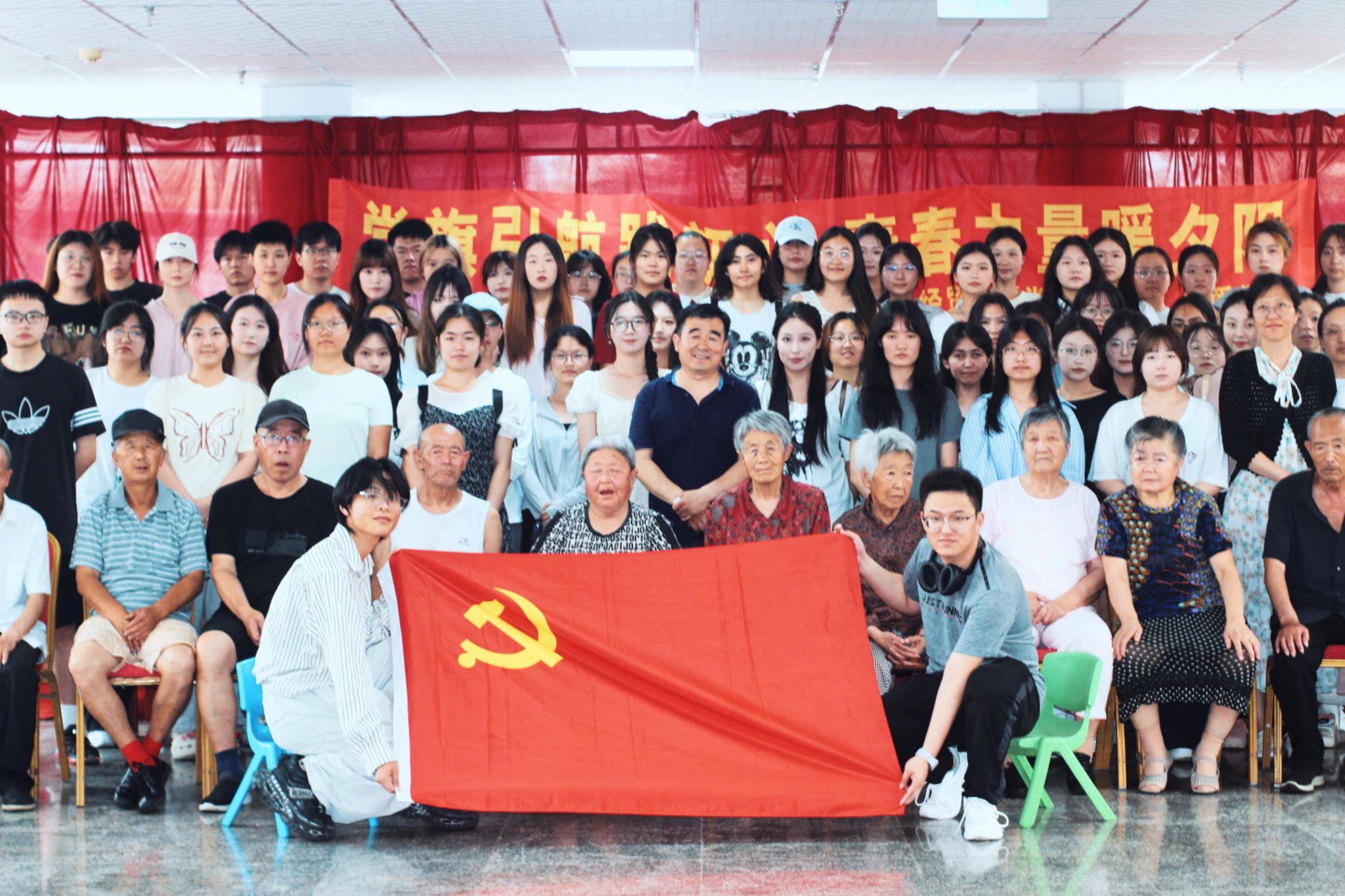 经济贸易系师生为敬老院捐赠了生活物资,并呈现了一场精彩纷呈的文艺节目汇演。活力四射的新疆舞蹈点燃了现场气氛,深情款款的经典老歌独唱引发现场老人的共鸣。一句句温暖的问候,一张张青春的笑脸,化作了滋润老人心田的涓涓暖流,整个敬老院沉浸在温馨融洽的氛围中。