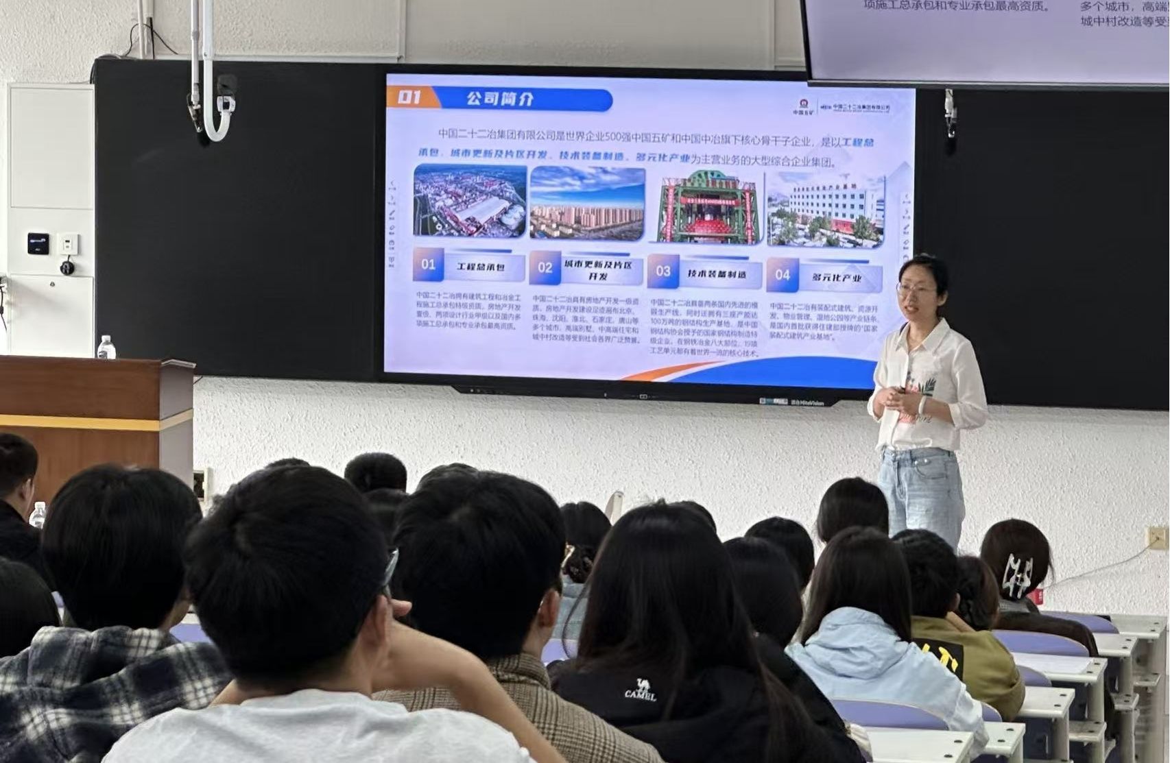 上午10时,尔雅楼205教室内座无虚席。赵佳宁部长通过相关项目案例以及企业文化建设的宣讲,展现了企业在行业内的技术引领力。宣讲结束后,300余名学生递交简历,涵盖我校安全、电气、机械、工商等专业。